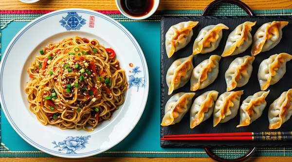 Tallarines, verduras, ternera, salsa picante y salsa de soja