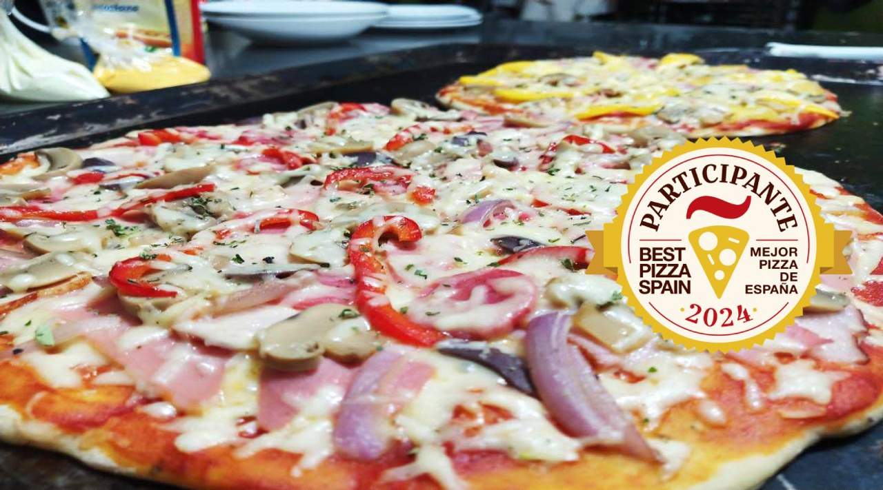Tomate, mozzarella, orégano, carne, champiñón, espárragos, pimiento, huevo natural, olivas verdes y olivas negras