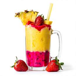 De fresa, lima, limón, hibisco, aloe vera y bayas de goji, orgnánico 100%, eco y probiótica.