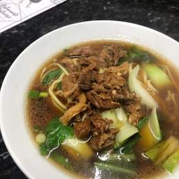 Sopa de tallarines de trigo con ternera y verduras chinas