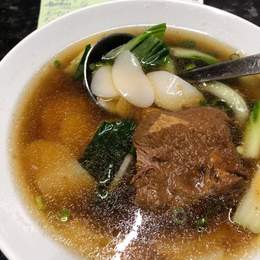 Sopa de fideos de arroz con costilla de cerdo y verduras chinas.