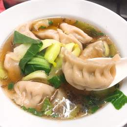 Sopa de empanadillas rellenas de carne de cerdo y cebolleta china