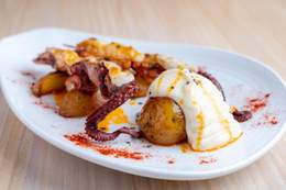 al horno con ali oli, con pimentón de La Vera y patata en dos texturas (2 u).