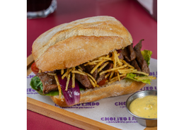 Pan ciabatta artesanal relleno de nuestro jugoso y tradiciona lomo saltado de ternera