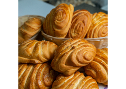Pan francés artesanal relleno de salchicha de huacho revuelta con huevos de corral.