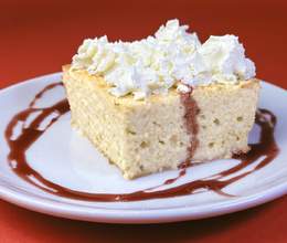 Bizcocho bañado en tres tipos de leche y espolvoreado con canela en polvo.