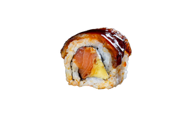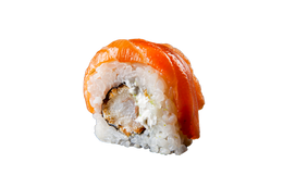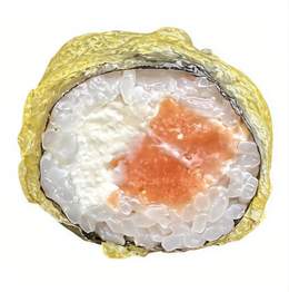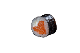 Delgado rollo de sushi elaborado con nuestro arroz recién elaborado, relleno de salmón fresco, queso crema.