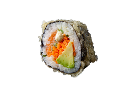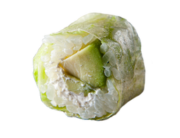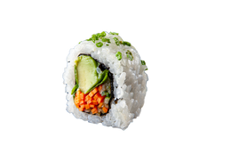 Delgado rollo de sushi elaborado con alga nori premium y nuestro arroz recién elaborado, relleno de tiras de cremoso aguacate hass.