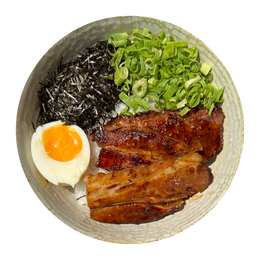 Panceta de cerdo caramelizada, huevo, cebolleta y alga nori.
