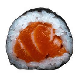 Delgado rollo de sushi elaborado con nuestro arroz recién elaborado, relleno de salmón fresco.