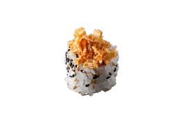 Delgado rollo de sushi elaborado con nuestro arroz recién elaborado, relleno de atún, cebolla crujiente y puntos de mayonesa picante.