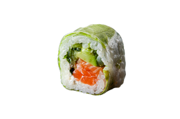 Delgado rollo de sushi elaborado con nuestro arroz recién elaborado, relleno de tiras de crujiente pepino, para ofrecerle un verdadero placer gustativo.