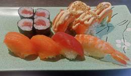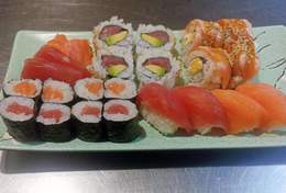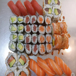 4 piezas de atún sashimi ,4 piezas de Salmón sashimi
