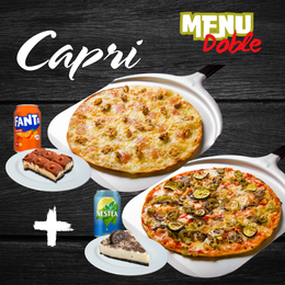 Tomate, mozzarella, cebolla pochada, mozzarella fresca, emmental y aceite de albahaca.