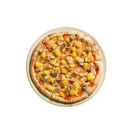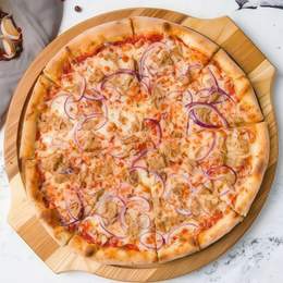 Tomate, mozzarella, pollo, bacon, cebolla, salsa barbacoa