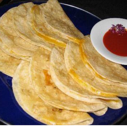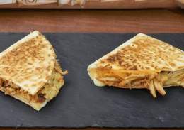 tortilla de trigo a la plancha con queso mozarella y pollo con toque picante