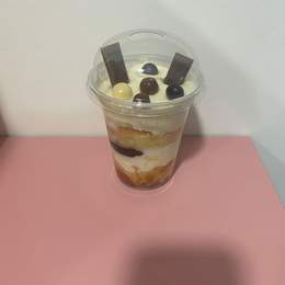 Nuestra tarta más dulce.... Con bizcochito, nata chantilly y sirope dulce de leche....