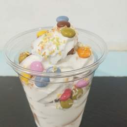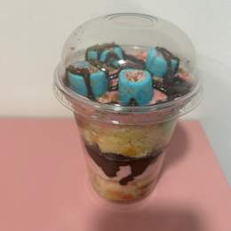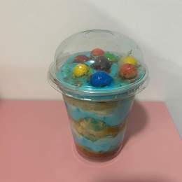 Delicioso Sandy chocolate con topping de emanems y sirope de chocolate blanco