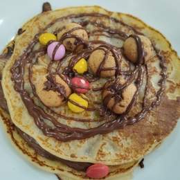 Nuestras tortitas especiales con sirope y topping Kinder bueno ( 2 unidades)