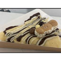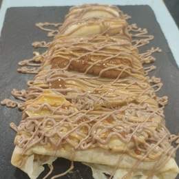 Dos Creps en uno, nuestro super crep con galleta Lotus, plátano y sirope Lotus y Kinder bueno.. No Podrás con el !!!!