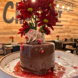 Pastel de cacao SIN HARINA.Cremoso de chocolate, mousse ligera de chocolate 70%cacao , Compota de frutos rojos.Ganache de chocolate 70% Cacao.