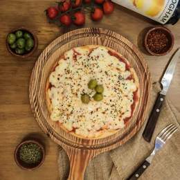 Pizza de 20cm de diámetro, (4 porciones), versión INDIVIDUAL.Pizza de media masa con salsa de tomate y abundante mozzarrella