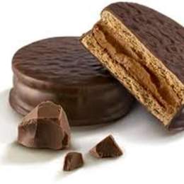 Alfajor Havanna relleno de Dulce de Leche con cobertura de chocolate.