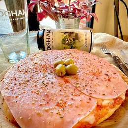 Pizza de 20cm de diámetro, (4 porciones), versión INDIVIDUAL. Pizza de media masa, con salsa de tomate, queso mozzarella, y jamón dulce