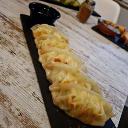 Son unas especie de empanadillas que tienen forma de media luna. Van rellenas de marisco y verduras como cebolla, negi, hojas de col, jengibre y ajo picado.