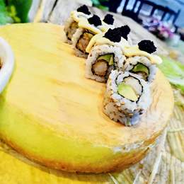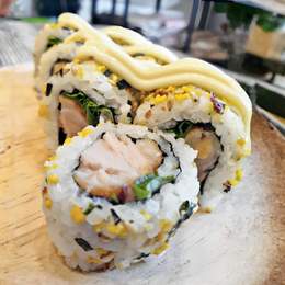 En japonés, la palabra maki significa “rollo”. El maki sushi es por tanto un rollo de alga nori relleno de arroz y mango.
