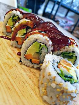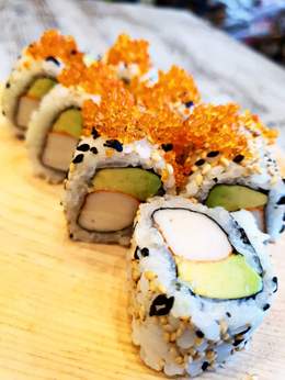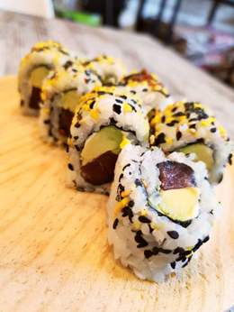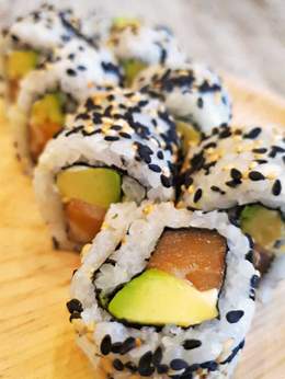 En japonés, la palabra maki significa “rollo”. El maki sushi es por tanto un rollo de alga nori relleno de arroz y aguacate.