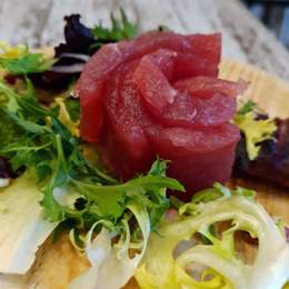 El Sashimi es un plato que viene de Japón que se basa en pescados crudos y cortado de manera fina, pero no tanto como se corta el carpaccio sino algo más grueso. La palabra Sashimi en Japonés se refiere a “saborear un ingrediente por sí mismo”.