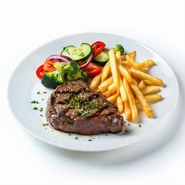 Entrecot A La Parrilla Con Patatas Y Pimientos