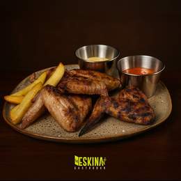 Con la mezcla perfecta fuego, sabor y dos salsa irresistibles: salsa brava de la casa y salsa 4 quesos. Acompañado de patatas fritas