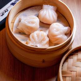 5 dim sum: gamba y cerdo iberico. ternera con pate de foie. jade de seta. gamba con cilantro. cerdo iberico con seta de cardo.5 dim sum: shrimp and Iberian pork. beef with foie pate. mushroom jade. shrimp with cilantro. Iberian pork with oyster mushroom.
