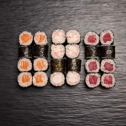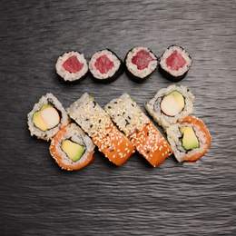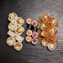 Makis Salmón (4) Atún (4) Crazy Salmón (4) Surimi (4) California Salmón (4) Gamba (4)