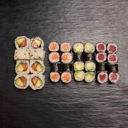 Makis Salmón (4) Makis Gamba (4) California Salmón (4) California Gamba (4) Nigiris Salmón (2) Nigiris Gamba (2)