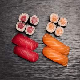 Maki Salmón (4), Maki Atún (4), Nigiri Salmón (2), Nigiri atún (2)