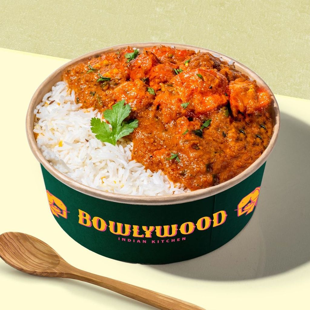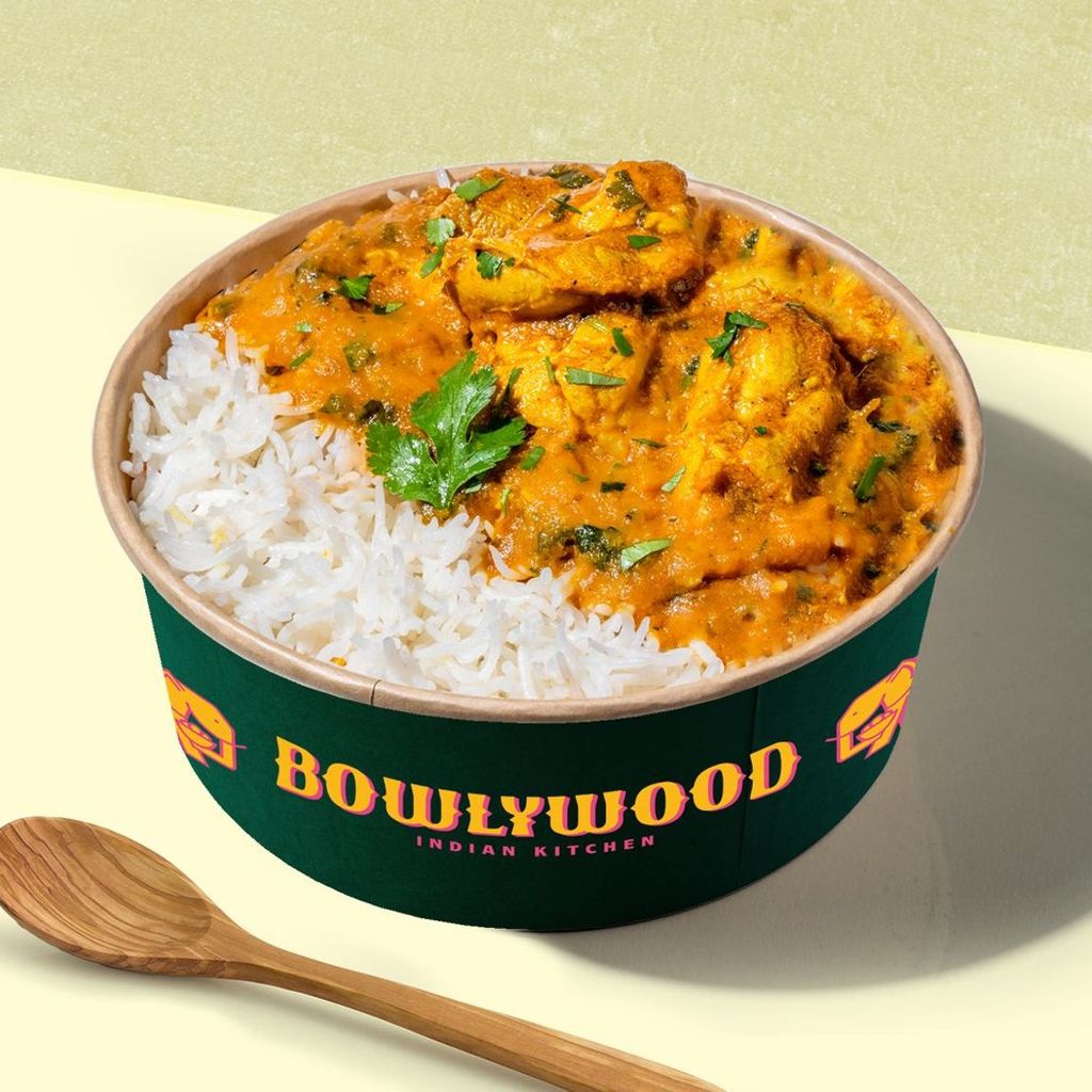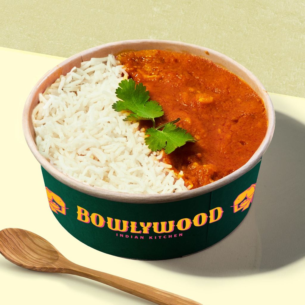 Nuestro bol más suave: deliciosos trozos de pollo dorados, guisados en una salsa cremosa made in Delhi, con una base de arroz.