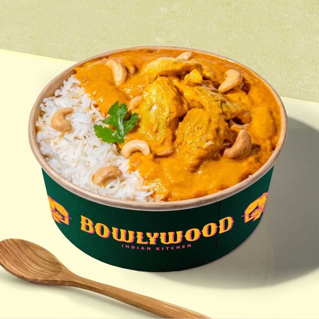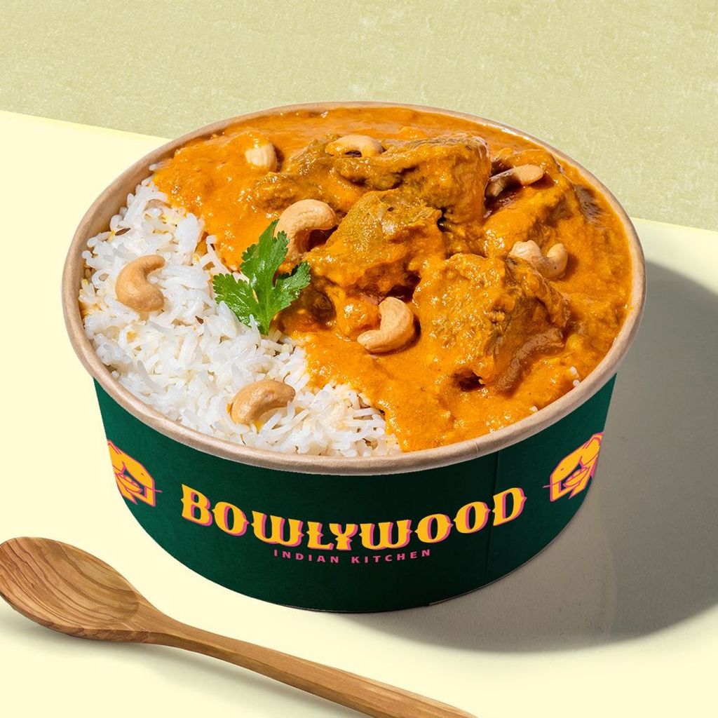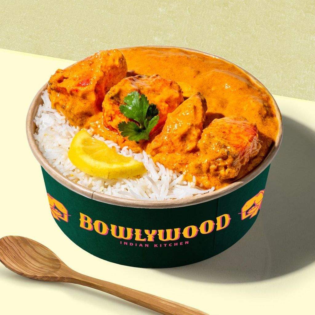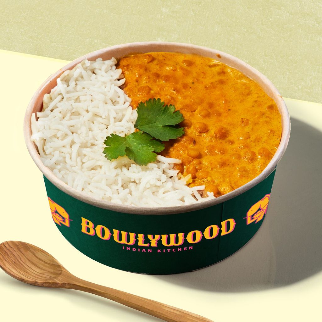 Nuestro bol más suave: deliciosos trozos de pollo dorados, guisados en una salsa cremosa made in Delhi, con una base de arroz.