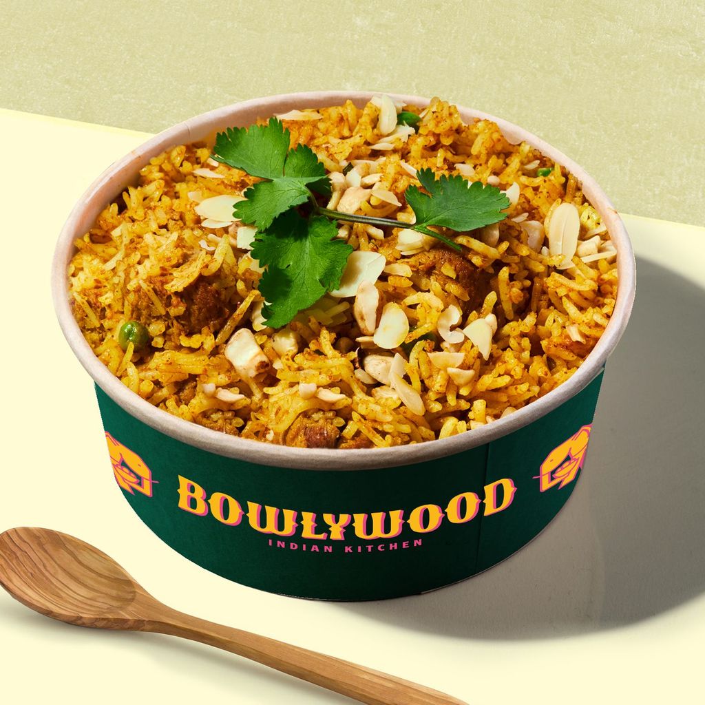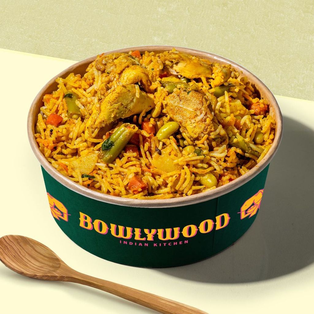 Plato icónico elaborado con arroz y especias Biryani, mezclado con deliciosos trozos de pollo con verduritas.