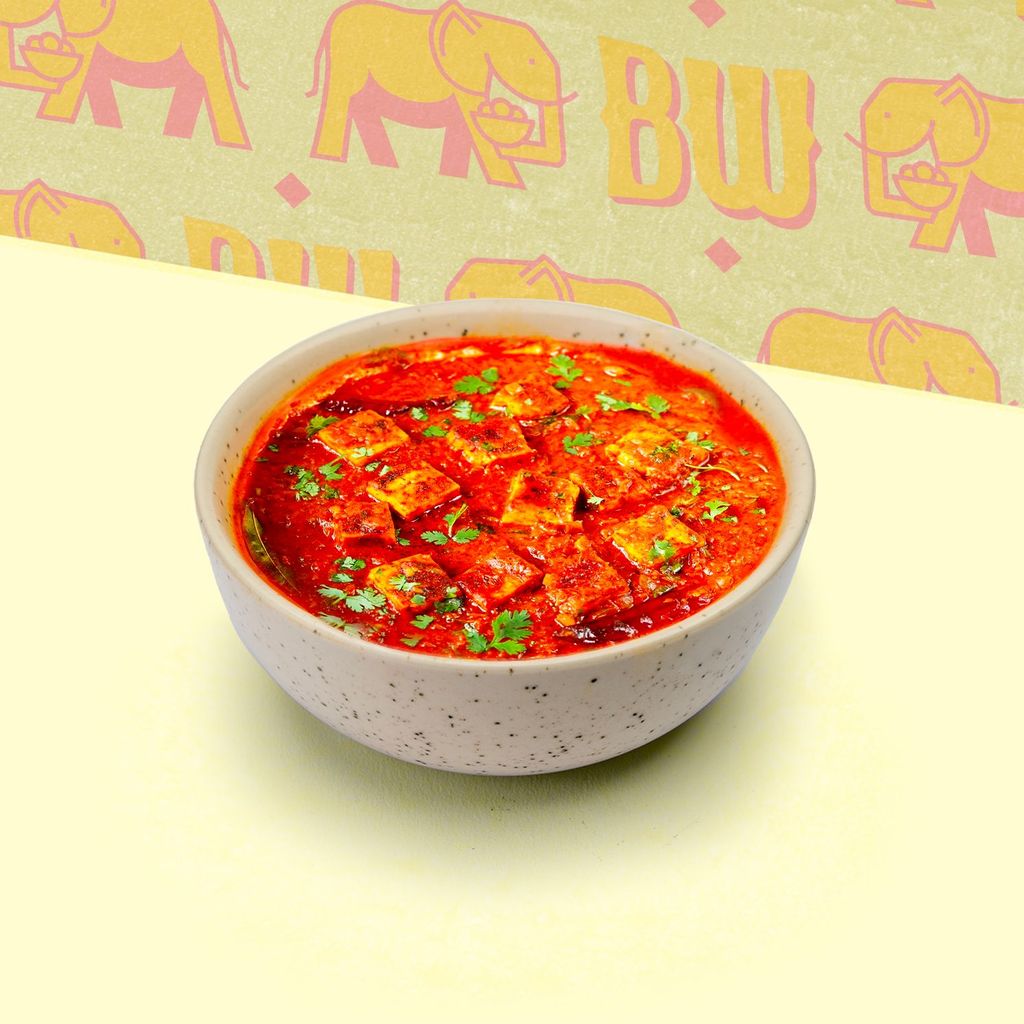 Bol compuesto de generosos trozos de pollo tikka deshuesados y guisados en una salsa masala a base de tomate, cebolla y cilantro, servidos con una base de arroz. ¡Sin duda, uno de los platos más famosos de la cocina india!