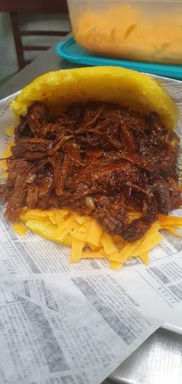 Disco de harina de maíz relleno de carne de res esmechada en su salsa