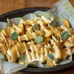 Patatas gajo fritas acompañadas con nuestra salsa campera