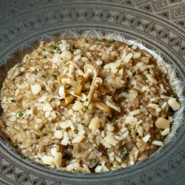 Arroz arborio mantecado con crema de boletus, seta shimeji y setas silvestres