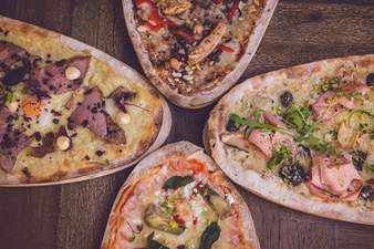 Boletus con seta shitake, shimeji y setas silvestres (con base de tomate y mozzarella