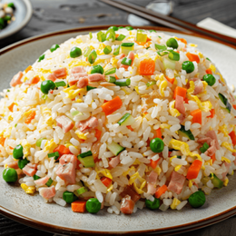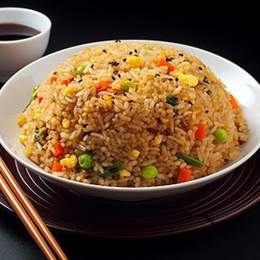 Arroz frito con huevo y verduras mixta,salsa soja.