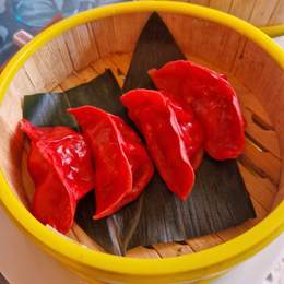 Relleno de lgambas y bambú,servi salsa soja vinagre