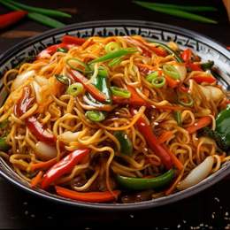 Tallarines Udon salteado con Verudura mixta y Huevo,Salsa Tonkatsu y soja.