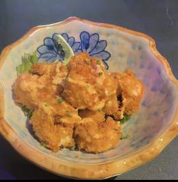 Pollo rebozado karrage estilo japones,servi salsa chile agripicante.